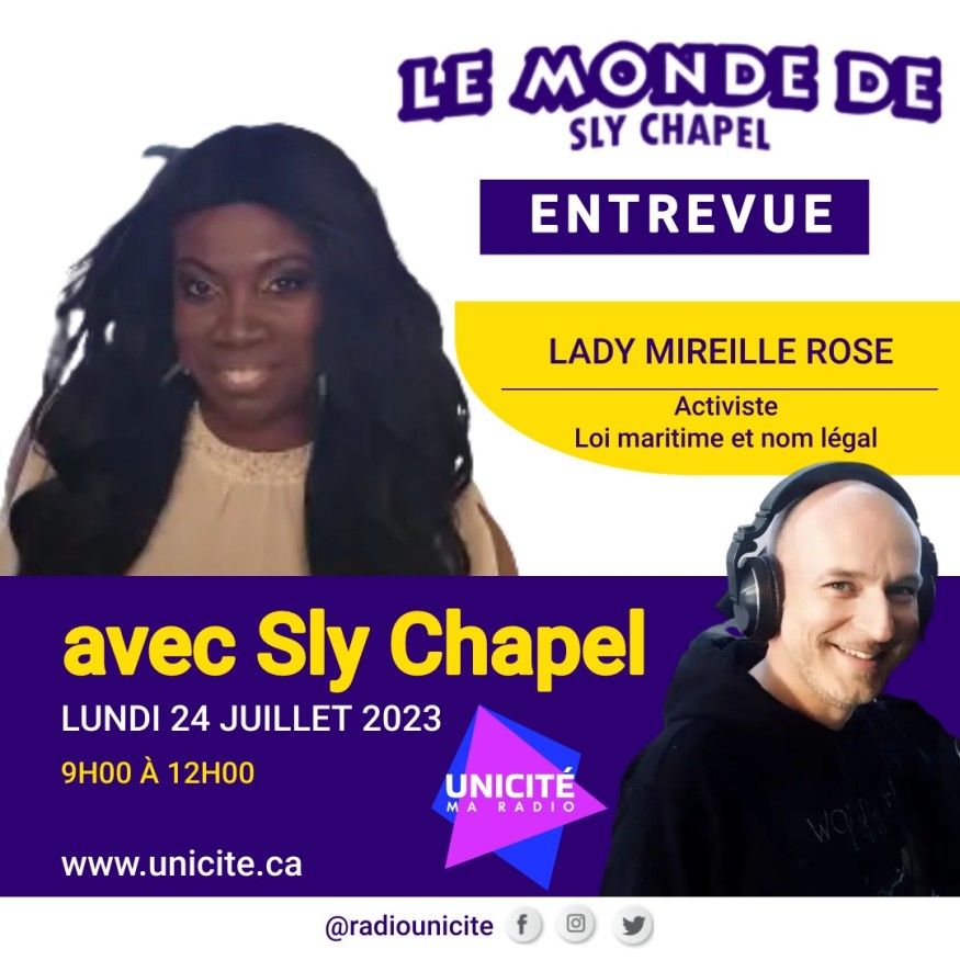 Sly Chapel discute avec l'activiste Lady Rose (Mireille) à propos de la loi maritime et du nom légal. À écouter absolument!